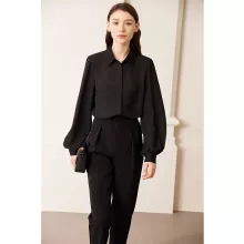 Use our battle tested marketing materials for Elegant Black Chiffon Blouse - Minimalist Spring Casual Top