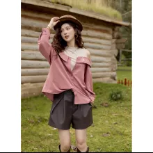 Use our battle tested marketing materials for Off Shoulder Contrasting Color Spliced Top with Embroidery