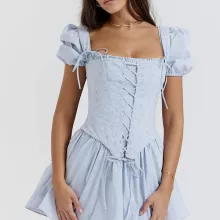 Use our battle tested marketing materials for Elegant Summer Puff Sleeve Corset Mini Dress - Lace-Up A-Line Party Outfit