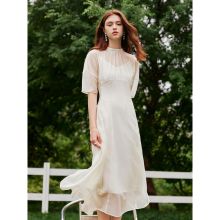 Use our battle tested marketing materials for Elegant Two-Piece Beige Summer Dress with Vest and Short Sleeves