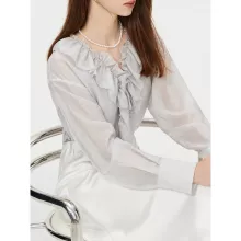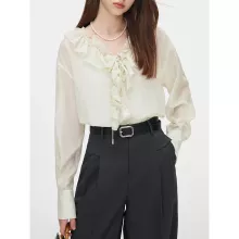 Use our battle tested marketing materials for Women's Ruffled V-Neck Vest and Blouse Set with Drop Sleeves