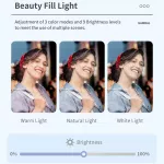 - Fill Light with Adjustable Brightness: Features a beauty fill light with 3 color modes and 9 brightness levels to match any setting.