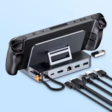 Elevate your gaming, streaming, and multitasking experience with the 6-Port USB-C Docking Station. Designed for serious gamers, professionals, and digital nomads, this sleek and powerful docking station delivers everything you need to supercharge your setup. Whether you're immersed in an intense Steam Deck battle, navigating your Nintendo Switch, or juggling multiple tasks on your laptop, this hub has you covered. Its compact, space-grey design fits seamlessly into any environment, offering both style and top-tier performance.