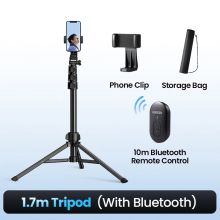 Whether you're vlogging, live streaming, or capturing stunning group photos, this foldable aluminum phone tripod stand is the ultimate tool for your creative needs. Its sleek, lightweight design offers superior portability, making it the perfect companion for any adventure—whether at home, in the office, or out in the wild. With up to 1.7m in height and full 360° rotation, you'll always find the perfect angle to shoot your best content. This stand is more than just a tripod; it's your personal assistant for all things photography, video recording, and live streaming.