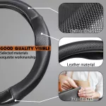 Enhance your vehicle's interior with the Universal 37-38cm Car Steering Wheel Cover, designed for both comfort and style. Made from high-quality PU leather and carbon fiber, this steering wheel cover offers a luxurious look while providing the grip and control you need for safer driving. The breathable, non-slip design ensures your hands stay comfortable, even during long journeys or hot summer days. Perfectly designed to fit steering wheels with a diameter of 37-38cm, this cover adds a sleek and modern touch to any car's interior, making your steering wheel feel like new again.