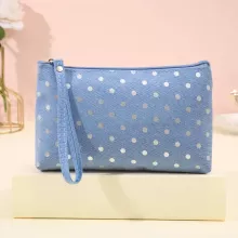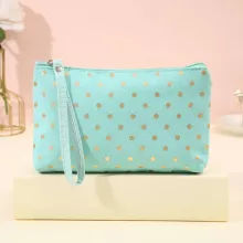 Use our battle tested marketing materials for Pretty Pink Canvas Makeup Brush Organizer with Gold Foil Dots - Travel Cosmetic & Jewelry Bag