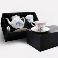 Use our battle tested marketing materials for Luxury European Ceramic Coffee & Tea Set with Purple Iris Flower Design