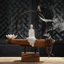 Use our battle tested marketing materials for Elegant White Ceramic Monk Lotus Backflow Incense Burner with Wooden Base