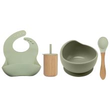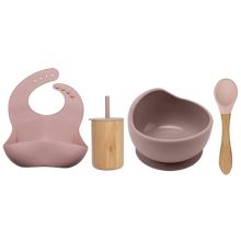 • 4-piece set: Includes a silicone bowl, bib, spoon, and bamboo cup—everything you need for mealtime.