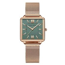 Discover a timepiece that perfectly blends sophistication and modern style with the Rose Gold Square Watch featuring a stunning green dial. This striking watch is designed for the woman who values elegance with a twist of uniqueness. Its square case shape, paired with the rich green dial and Roman numeral accents, sets it apart from traditional wristwatches. The rose gold stainless steel strap adds a touch of luxury, making it a fashionable accessory for any occasion.