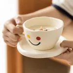 Introducing the Creative Smiley Ceramic Coffee Cup and Saucer Set, the perfect blend of charm and functionality for your morning routine. With a capacity of 250ml, this exquisite mug set is designed to elevate your coffee, tea, or breakfast experience. Its playful smiley face design adds a touch of joy to every sip, making it an ideal companion for your favorite hot beverages. Made from high-quality ceramic, this coffee cup is not just a drinkware item; it's a delightful accessory for your kitchen.