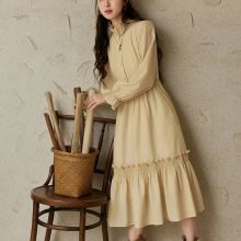 Use our battle tested marketing materials for Elegant French Stand Neck A-Line Dress with Elastic Sleeves for Autumn