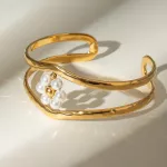 This 18K gold plated cuff bracelet is versatile enough to wear with both casual and formal attire. Its eye-catching imitation pearls and flower accents make it a great accessory for special events such as weddings or anniversaries, while the minimalist double-layer design ensures it blends seamlessly with your everyday wardrobe. Whether you're looking to make a statement or add a subtle touch of elegance, this bracelet is the perfect choice for enhancing your style.