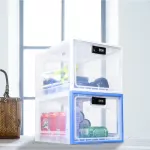 - Clear design allows you to monitor stored items without opening the box.