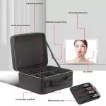 This case features a high-quality LED-lit mirror that provides perfect lighting for precise makeup application, ensuring you always look your best. The spacious interior is thoughtfully designed with multiple compartments and adjustable dividers to accommodate various beauty products, from foundations and palettes to brushes and skincare bottles. The case is lightweight yet sturdy, equipped with a smooth zipper closure for security and convenience, making it an ideal travel companion or countertop organizer. With its stylish, compact design, this cosmetic case offers the perfect blend of practicality and elegance.