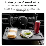 Whether you're a commuter needing a quick bite or a remote worker seeking a mobile workstation, this Portable Car Steering Wheel Desk is the ideal solution. Use it during your lunch break to eat comfortably in your car or set up your laptop to get some work done while parked. It’s also perfect for road trips, letting passengers enjoy snacks and drinks conveniently. The versatile design means you can easily switch from working to dining with just a flip of the tray, giving you a practical surface for various needs.