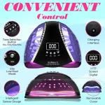 This UV LED Nail Lamp is designed for anyone looking to elevate their nail experience. With a sleek design, intelligent features, and high power output, it caters to all gel types while preventing potential skin darkening or eye discomfort. Ideal for both personal and professional use, its quick-dry capabilities make it perfect for busy schedules, saving time and reducing salon visits. The non-closed design also allows for efficient heat dissipation, keeping the lamp cool and comfortable even during extended use.