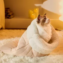 Use our battle tested marketing materials for Soft Cozy Cat Nest Sleeping Bag - Warm, Semi-Enclosed Pet Bed