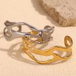 Step up your style with the Exaggerated Wave Hollow Cuff Bracelet – a bold, modern piece that beautifully balances elegance and edge. This bracelet brings a touch of luxury to any outfit, crafted from high-quality 316L stainless steel and expertly coated with a layer of 18K gold plating. The hollow wave design adds a unique geometric flair, making this bracelet as distinctive as it is sophisticated. Whether you’re dressing up for a formal occasion or adding a hint of glamour to a casual ensemble, this bracelet is the perfect finishing touch.
