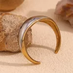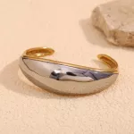 This 18K Gold Plated Two-Tone Minimalist Cuff Bracelet redefines elegance with a modern twist. Crafted from premium 316L stainless steel and featuring a sophisticated gold and silver patchwork design, this bracelet is a stunning addition to any woman’s jewelry collection. It combines strength and beauty, ensuring a piece that is both durable and luxurious. Whether you’re dressing up for a special occasion or adding a refined touch to your everyday look, this cuff bracelet is the perfect choice to elevate your style.