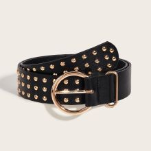 Use our battle tested marketing materials for Vintage Bohemian Black Belt with Gold Buckle – Rivet Detail, Casual & Chic