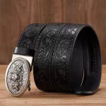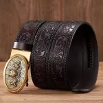 Elevate your style with this stunning Wolf Designer Belt, meticulously crafted for the modern man who appreciates both luxury and artistry. Featuring a unique, retro automatic buckle with an intricate floral design, this belt exudes sophistication and strength. Made from genuine split leather, it offers the perfect combination of durability and comfort, while the 3.5 cm width ensures a sleek, contemporary look. Designed for those who want to stand out, this belt combines fashion with functionality. Whether you’re dressing up for a special occasion or simply adding a touch of class to your everyday outfit, the Wolf Designer Belt is a versatile accessory that complements any wardrobe. Its automatic buckle mechanism ensures a smooth, easy fit, while the elegant floral pattern on the buckle makes it a true statement piece.Product Features