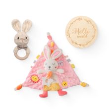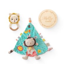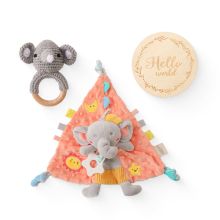 Use our battle tested marketing materials for Baby Cotton Scarf, Crochet Animal Rattle & Milestone Card Set – Newborn Gift
