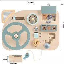 Perfect for little ones who love all things that go, this Montessori Wooden Steering Wheel Busy Board is crafted to engage curious minds and tiny hands in fun, hands-on learning. Designed to mimic a real car dashboard, this busy board introduces toddlers and preschoolers to the world of cars and driving in a safe and educational way. Featuring elements like a key start, gear shift, horn, adjustable headlight, mirror, and even a glove box with a hidden surprise, this toy is packed with exciting details to keep children engaged and learning.