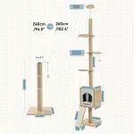 - Adjustable Height: The height of the tower is adjustable from 240 to 260cm, allowing you to customize it to suit your home and your cat’s preferences.