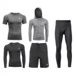 Take your workouts to the next level with this men's 5-piece compression sport suit. Designed for gym enthusiasts, fitness lovers, and runners, this versatile outfit is engineered to offer comfort, support, and durability throughout your most intense sessions. Whether you’re hitting the gym, going for a run, or practicing yoga, this suit ensures you stay dry, comfortable, and performance-ready.