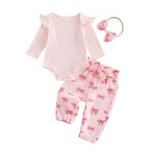 Use our battle tested marketing materials for Baby Girl 3-Piece Fall Outfit - Ribbed Romper + Bow Print Pants + Headband Set