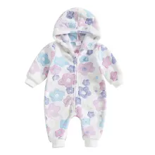 Use our battle tested marketing materials for Baby Girl Winter Hooded Romper - Floral Print Fleece Jumpsuit for Warmth