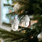 Transform your holiday decorations with the shimmering elegance of our Silver Glass Acorn Christmas Ornaments. This set of two meticulously crafted acorn ornaments is designed to bring a touch of nature-inspired beauty and festive sparkle to your Christmas tree, mantel, or table displays. Made from high-quality glass and featuring a dazzling glitter accent at the top, these acorns catch and reflect the light, creating a magical, shimmering effect that enhances any holiday setting. Whether you’re decorating for Christmas or preparing for a New Year’s celebration, these ornaments add the perfect finishing touch to your seasonal décor.