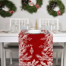 Use our battle tested marketing materials for Christmas Floral Leaf Red Linen Table Runner for Holiday & Farmhouse Décor