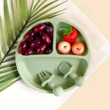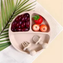Use our battle tested marketing materials for 3-Piece Silicone Baby Feeding Set with Suction Bowl, Divided Plate, Spoon, Fork, and Bib