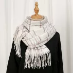 Elevate your winter wardrobe with our sophisticated women's plaid scarf. This luxurious long scarf, measuring 68.9 inches by 26.4 inches, offers a perfect balance of warmth, style, and versatility. The soft, thick material is ideal for keeping you cozy during chilly days while the light-colored grid pattern adds a touch of elegance to any outfit. Whether you're heading to work, exploring the city, or enjoying a casual day out, this scarf is a must-have accessory.
