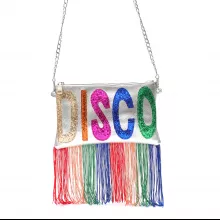 Use our battle tested marketing materials for Metallic PU Leather Clutch Bag with Sequined Letters and Fringe