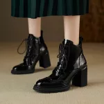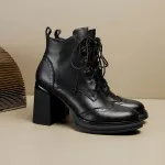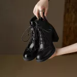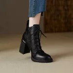 These lace-up leather boots offer a chic, modern twist on classic motorcycle footwear. With their super high heels, these boots provide a sophisticated edge to any outfit, while the round toe ensures comfort without compromising on style. The combination of genuine cow leather and short plush lining makes these boots both durable and warm, perfect for autumn and winter seasons. The zip closure ensures easy wearability, so you can slip them on and off with ease whenever you're on the go. Designed with versatility in mind, these boots can be paired with everything from your favorite skinny jeans to skirts, dresses, and even leggings. Their sleek and stylish design works well with both casual and semi-formal outfits, making them the perfect footwear for a variety of occasions. Whether you're heading out for a night out on the town or simply looking to add an edgy touch to your daily wardrobe, these motorcycle boots are the ideal choice for any woman looking to stand out in style.When to Wear These Boots