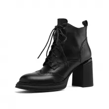Discover the perfect blend of bold, rugged style and luxurious comfort with these stunning women's ankle boots. Crafted from genuine cow leather, these lace-up motorcycle boots are the ultimate choice for both autumn and winter wear. The thick, square high heels provide extra height and confidence, while the round toe design ensures a comfortable fit for all-day wear. Whether you're navigating through busy city streets or adding an edgy vibe to your outfit, these boots offer the perfect balance of functionality and style. The zip closure ensures an easy and secure fit, while the short plush insole and lining provide a cozy and warm interior, keeping your feet comfortable even in colder temperatures. These boots are designed to withstand the elements, making them the perfect footwear for colder months without sacrificing style. The solid color and sleek design make them versatile enough to pair with anything from casual jeans to a stylish dress, giving you endless outfit possibilities.Product Features