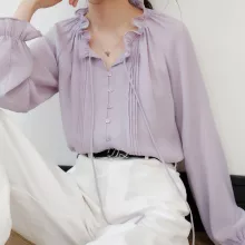 Use our battle tested marketing materials for Elegant Purple Chiffon Blouse with Ruffled Collar