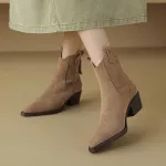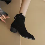 These winter Chelsea boots are a wardrobe essential for any woman who wants to look chic while staying warm and comfortable. With their cow suede material, these boots exude luxury and durability, ensuring they’ll last through many winters to come. The pointy toe and square wedge heel give them a sleek, modern appearance that can easily transition from casual to dressy. Whether paired with leggings, skirts, or jeans, these boots elevate any outfit. The short plush lining is perfect for keeping your feet cozy during the colder months, while the zip closure adds both convenience and style. The TPR outsole ensures solid traction, making these boots practical for winter walks without sacrificing elegance. Whether you're heading to work, brunch with friends, or a night out, these boots will keep you comfortable and stylish throughout the day.When to Wear These Boots