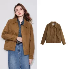 Use our battle tested marketing materials for Red Suede Turn-Down Collar Winter Jacket with Snap Buttons