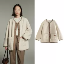Use our battle tested marketing materials for Plush Long Sleeve Loose Jacket with Contrast Stitching - Cozy & Stylish Outerwear