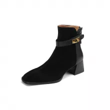 Use our battle tested marketing materials for Classic Cow Suede Ankle Boots with Square Toe and Thick Heels for Women