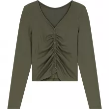 Use our battle tested marketing materials for V-Neck Pleated Slim Fit Button T-Shirt for Women