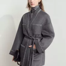Use our battle tested marketing materials for Trendy Woolen Coat with Ribbon Splicing & Belt