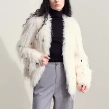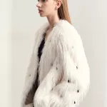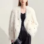 What makes this faux fur coat special is its perfect fusion of classic luxury and modern minimalism. The beautiful V-neck design is not just stylish—it’s also practical, giving you the versatility to layer with your favorite winter outfits. The nail bead embellishment creates just the right amount of sparkle, making it perfect for evening events or adding a bit of flair to your everyday wear.
