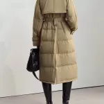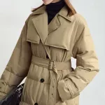 The long, full-coverage design is perfect for layering over your favorite sweaters, dresses, or casual outfits. The wide-waisted style is flattering on any body shape, offering a comfortable fit that allows you to move freely while staying stylish. With an adjustable belt and single-breasted button closure, this jacket can be customized to your preferred look, adding an elegant finishing touch to your winter wardrobe.