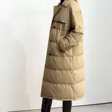 Embrace the winter season with confidence in this stunning long trench coat down jacket. Designed for women who value both comfort and style, this coat offers a perfect blend of warmth, practicality, and sophistication. Featuring a sleek solid color and thickened white duck down filling, this coat will keep you cozy on even the coldest days. Its graphene lining enhances insulation, making it your go-to jacket for chilly mornings and freezing evenings. Whether you're commuting to work, strolling through the city, or attending a winter event, this jacket will provide the perfect balance of style and function.
