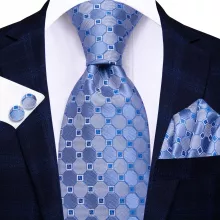 Use our battle tested marketing materials for Elegant Blue Plaid Dots Men's Tie Set with Handkerchief & Cufflinks